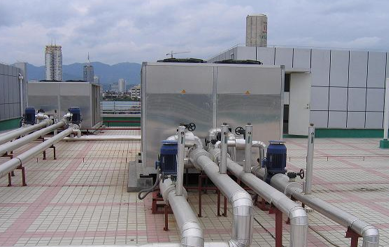 美術館冷熱源采用克萊門特風冷熱泵四管制多功能冷熱水機組,其工作原理是冷熱量的回收和綜合利用,由壓縮機、冷凝器、蒸發(fā)器、可變功能換熱器等組成。同時利用制冷循環(huán)的冷熱端,同時向用戶側提供冷水和熱水,一臺機組四個接管,兩個為冷凍水進出口,兩個為熱水進出口,冷凍水和熱水溫度同時設定和保證,不分優(yōu)先權,冷熱自動平衡,制冷量和制熱量可分別實現(xiàn)0~100%獨立調(diào)節(jié)。